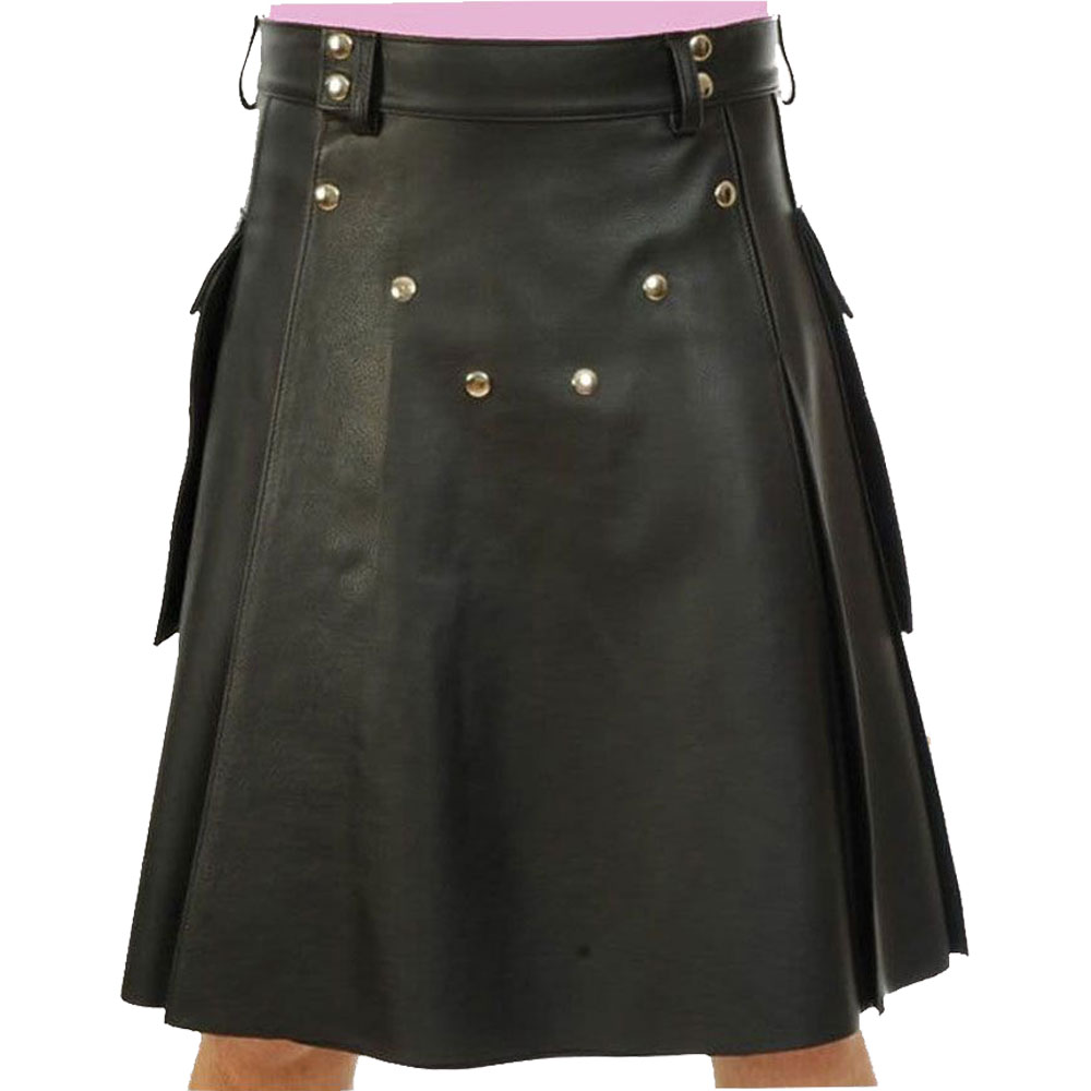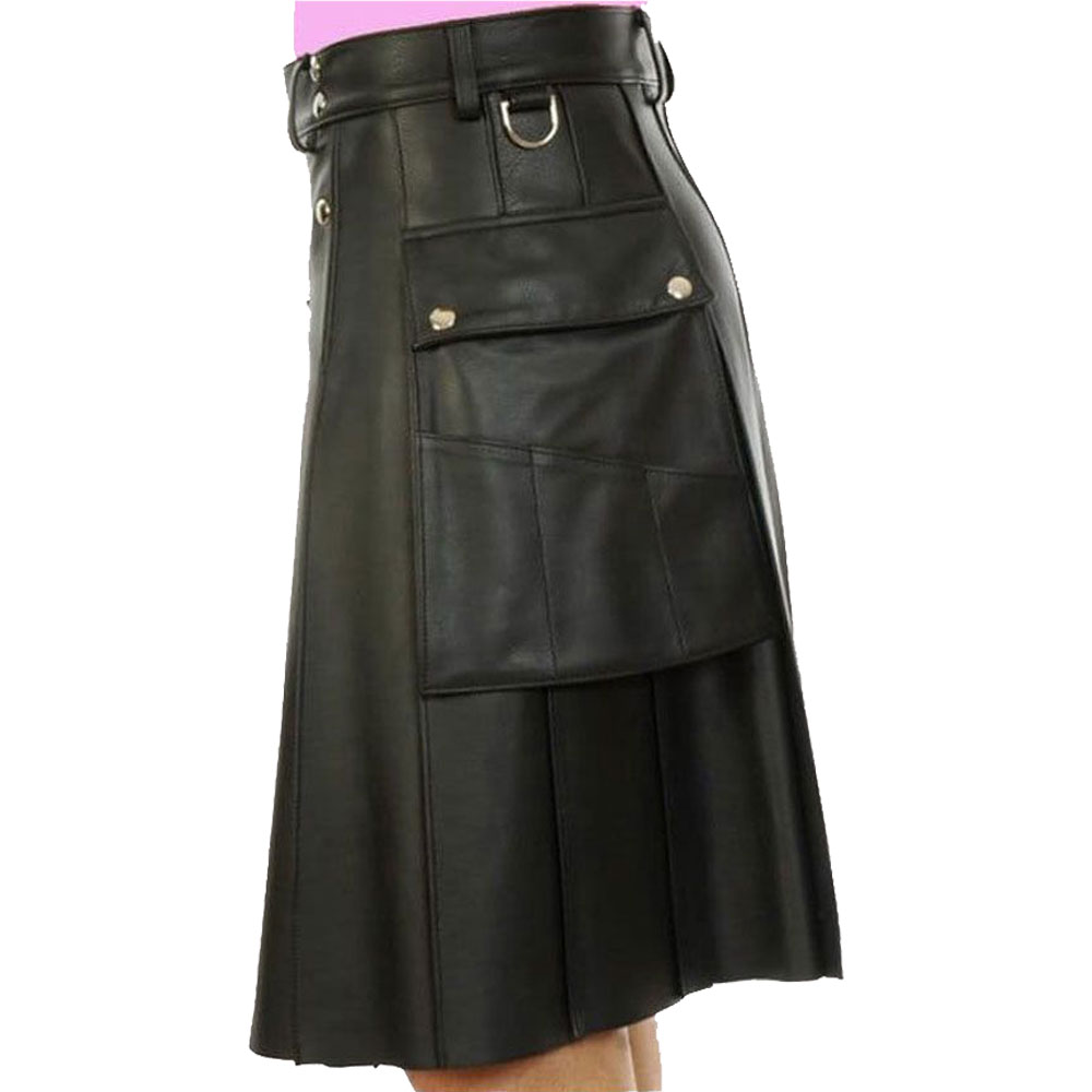 Premium leather construction ensures long-lasting durability and repeated wear. Further, reinforced stitching strengthens the kilt against everyday use. You can enjoy its sleek style season after season. Moreover, proper care keeps the leather soft and the shape structured. This kilt thus assures fashion and lasting value for your wardrobe.