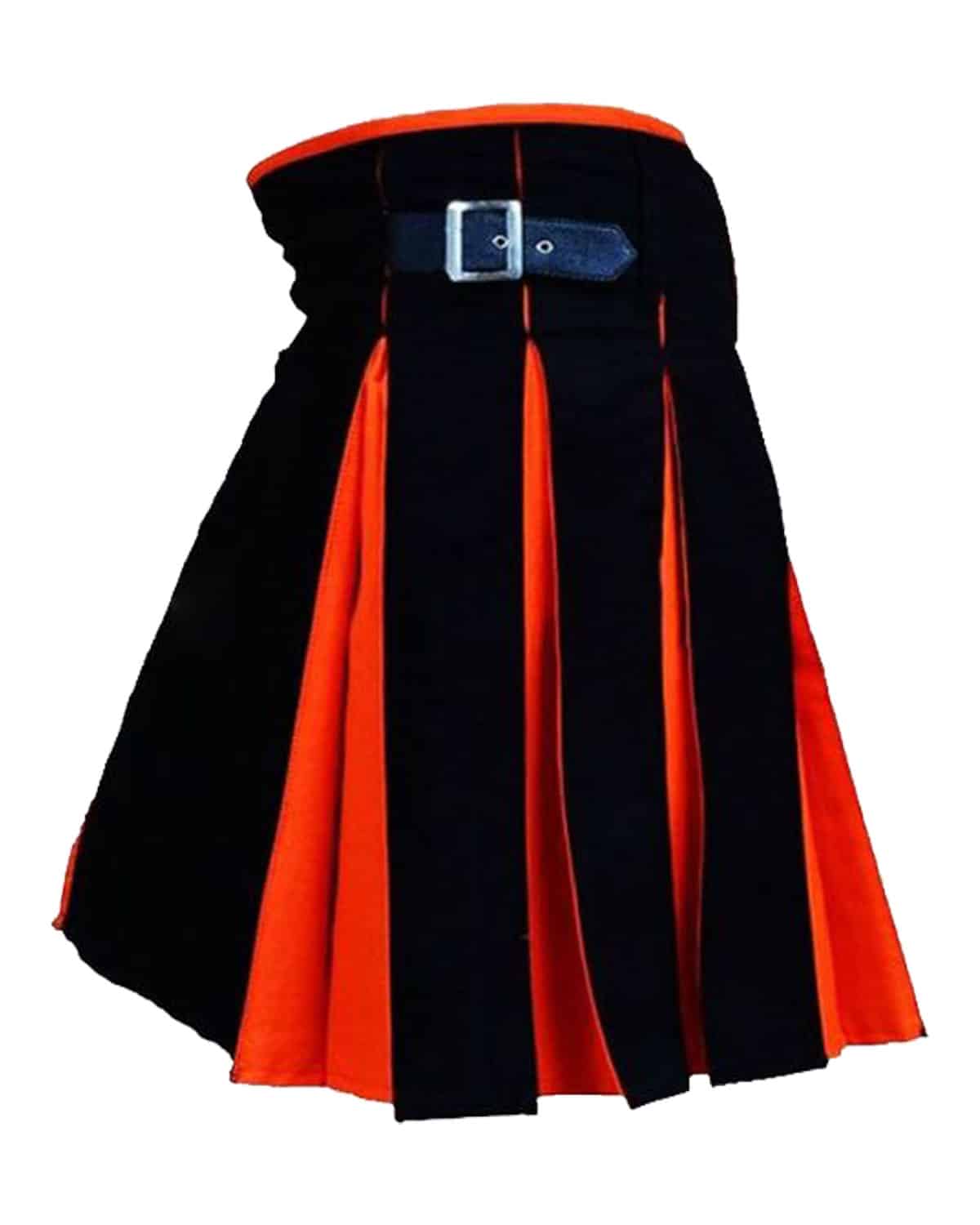 Bold Color Contrast: The Black & Orange Hybrid Kilt features a unique color combination that stands out from the crowd. The deep black base is perfectly accented by vibrant orange pleats, making it a must-have for those who love to make a statement.