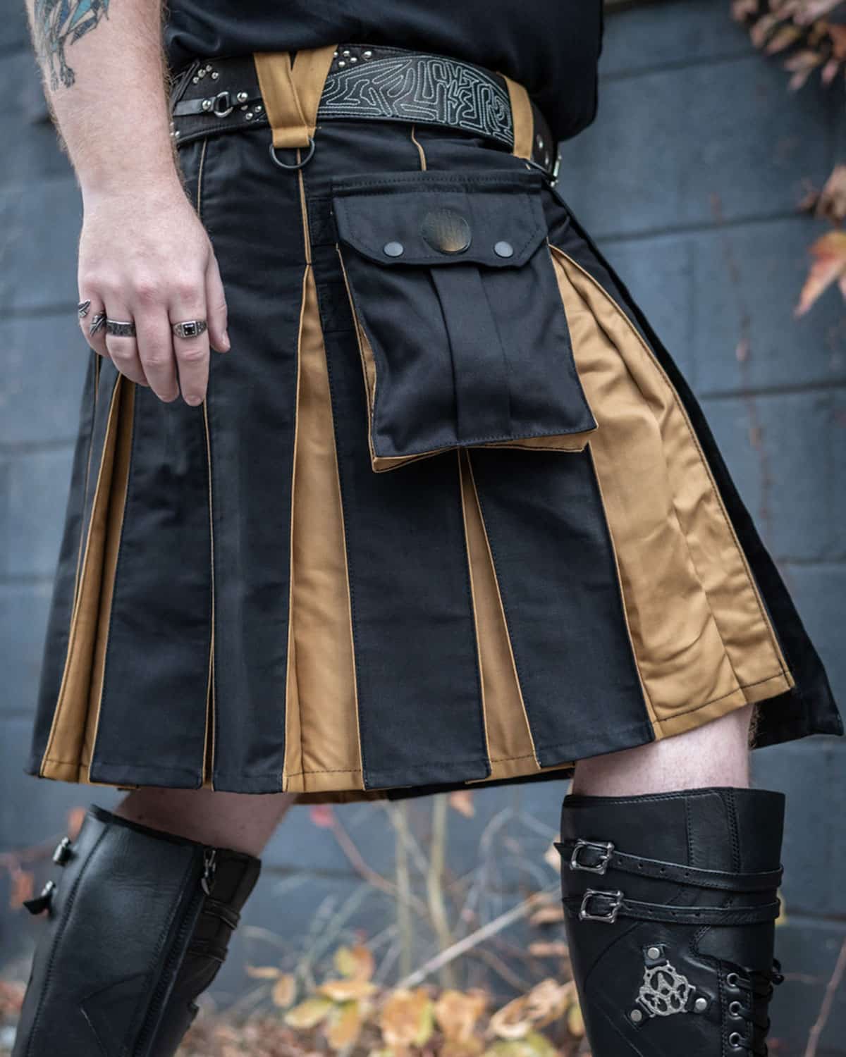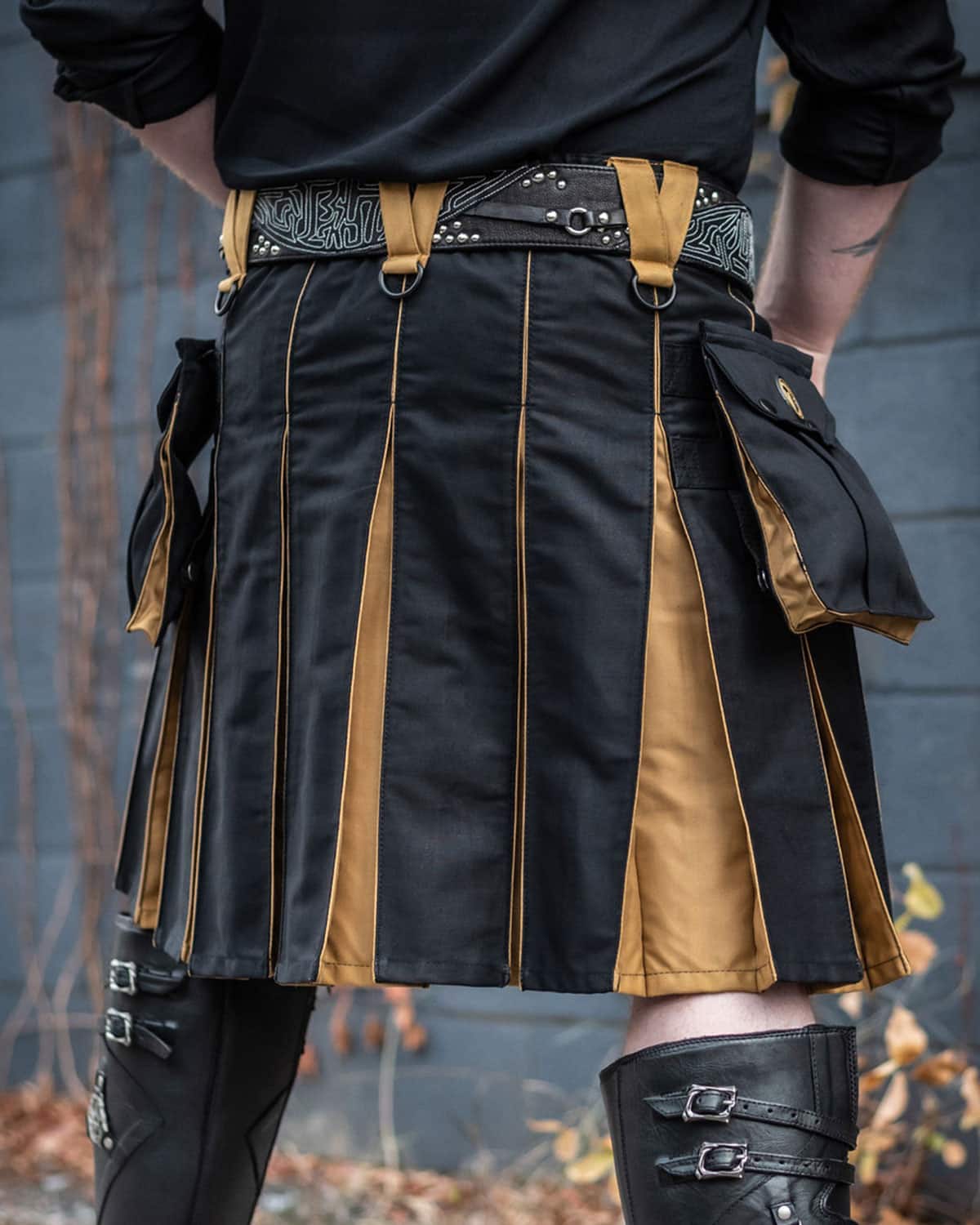 From rugged work environments to casual outings, the Hybrid Kilt Black & Gold seamlessly blends utility with style. Its bold look makes it suitable for multiple occasions, while its functional design ensures practicality.